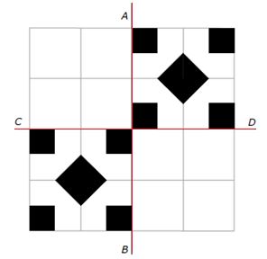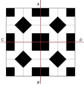 Hay diversas maneras de colocar las cerámicas para que formen diseños. La cuadrícula de abajo ha sido sombreada para mostrar cómo pueden colocarse las cerámicas en algunos de los cuadrados. Este diseño se puede continuar de modo que AB y CD sean ejes de simetría.