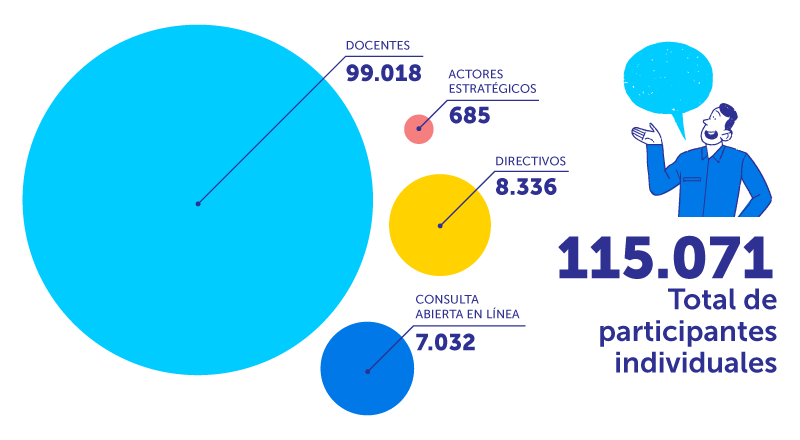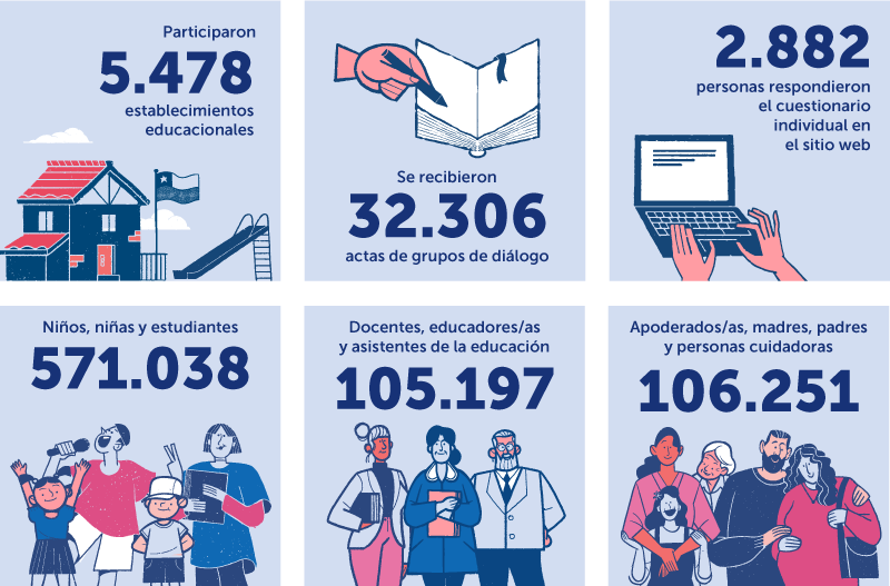 Entre 2023 y 2024, el Ministerio de Educación llevó a cabo un proceso de participación en dos etapas. El propósito fue construir una base sólida y participativa de información para esta actualización, combinando la visión de la ciudadanía, la experiencia de los profesionales de la educación y la diversidad de actores de las comunidades educativas.