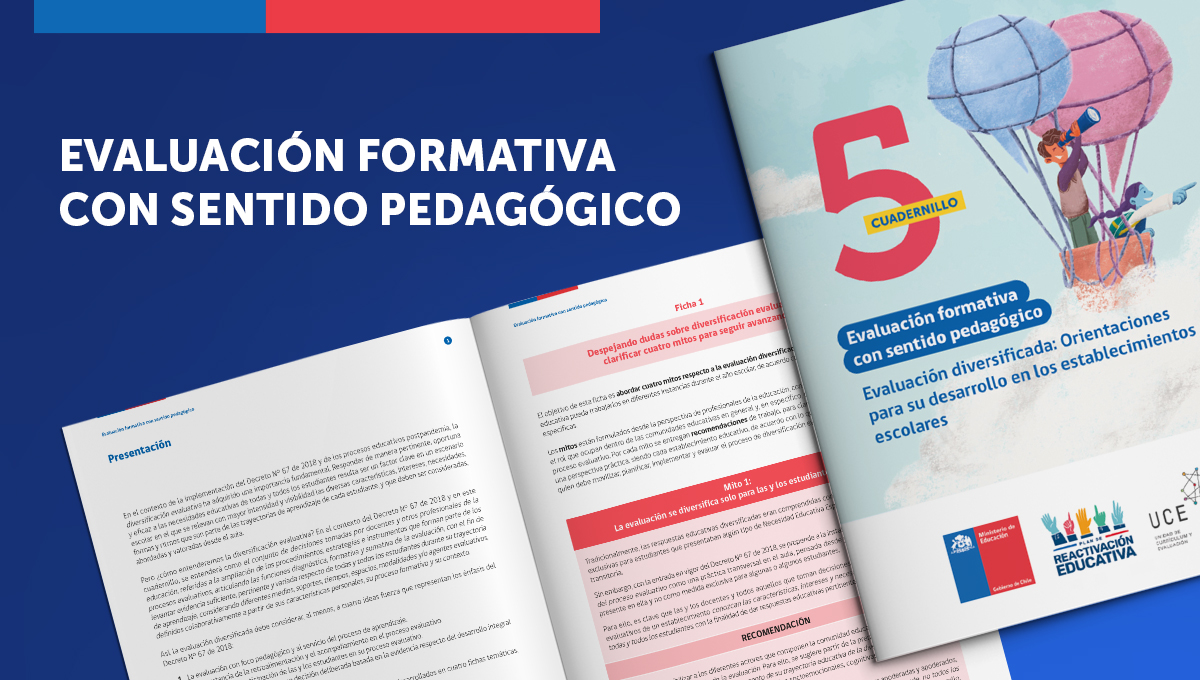 Este quinto cuadernillo ofrece cuatro fichas con aspectos claves de la diversificación de la evaluación en el contexto escolar, recogiendo mitos, recomendaciones y orientaciones que permitan su vinculación con los diferentes componentes del proceso evaluativo, reconociendo las necesidades formativas, oportunidades de mejora, intereses y características de las y los estudiantes.