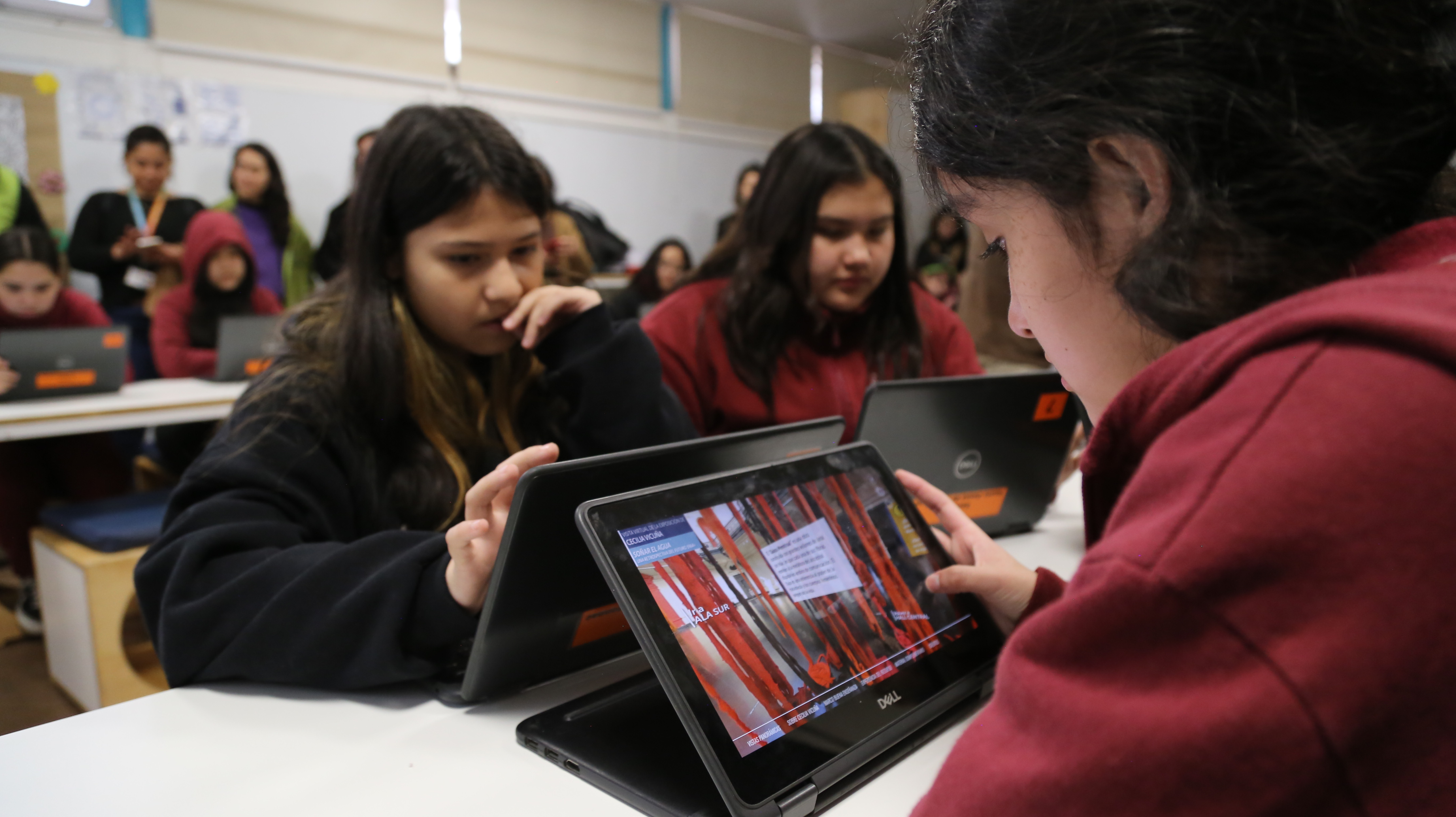La presentación de la plataforma se realizó en la Escuela Santa Juana de Lestonnac, de la comuna de Renca, donde la artista Cecilia Vicuña -que está en Nueva York-, envió un video para las estudiantes, en el que les pidió cuidar el agua y los invitó a compartir la experiencia con sus familias.