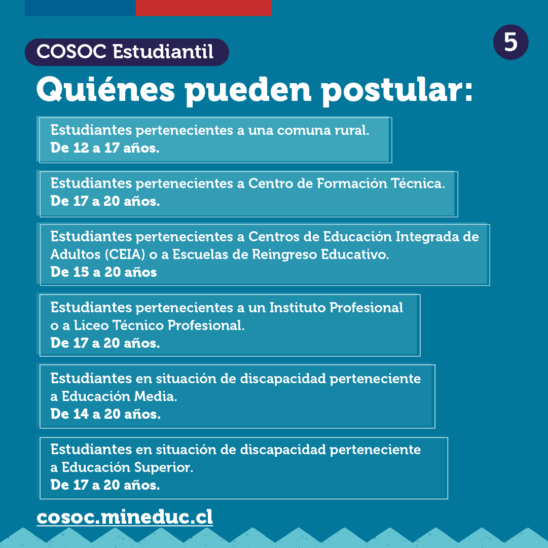 Les invitamos a postular e informarse sobre las fechas y bases del proceso en https://cosoc.mineduc.cl/