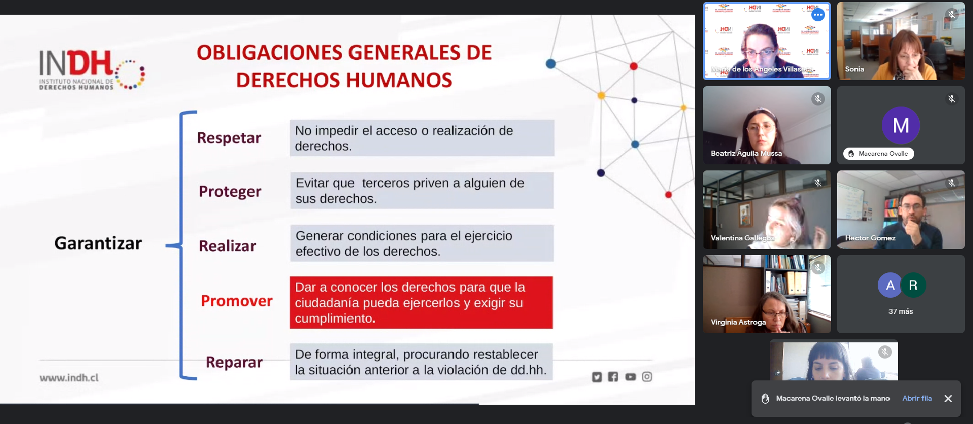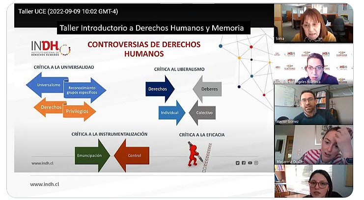 El viernes 9 de septiembre se efectuó la primera sesión del Taller Introductorio de Memoria y DD.HH. en el que participaron más de 35 integrantes de la Unidad de Currículum y Evaluación. Esta fue encabezada por María de los Ángeles Villaseca, jefa (s) de la Unidad de Promoción, Educación y Participación del INDH, quien se refirió al encuentro como un espacio en el que se busca generar un lenguaje común básico e iniciar un proceso de reflexión sobre el desafío de educar en Memoria con enfoque de Derechos Humanos desde el contexto escolar.