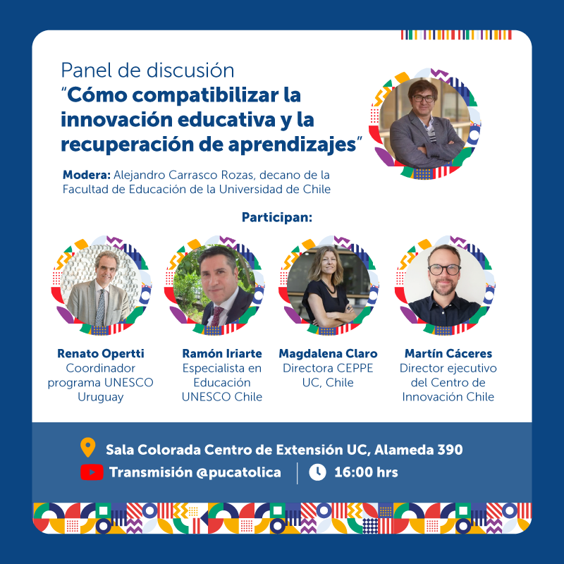 Martín Cáceres también será parte del panel "Cómo compatibilizar la innovación educativa y la recuperación de aprendizajes" que se realizará entre las 16:00 a 17:00 horas del martes 21 de noviembre en la casa central de la Universidad Católica de Chile, organismo colaborador del encuentro.