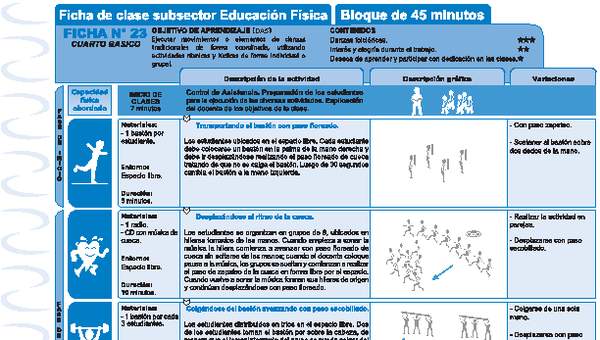 Ficha con un modelo de planificación de una clase para el desarrollo de la expresión corporal y la danza.
