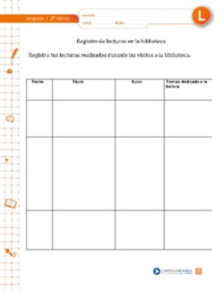 Hoja de registro de los textos leídos en las visitas a la biblioteca.