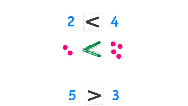 Imagen que muestra los símbolos menor que, mayor que e igual que, de forma pictórica y simbólica