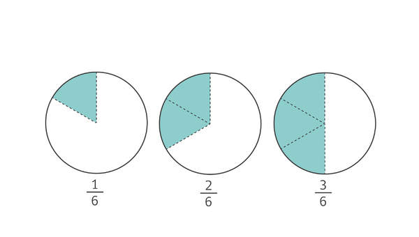 Imagen que muestra fracciones propias con denominador seis que puede ser usada con distintos fines pedagógicos.