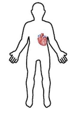 Se espera que los estudiantes identifiquen el corazón como órgano al que se refiere la definición y lo dibujen en el tórax al lado izquierdo de la línea media del cuerpo como señala la imagen inferior.