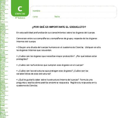 Plan de apoyo compartido: Ciencias Naturales 4° básico, Unidad 4