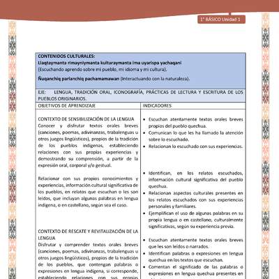 Matriz Unidad 3: Lengua y Cultura de los pueblos originarios ancestrales - Aymara -1º básic