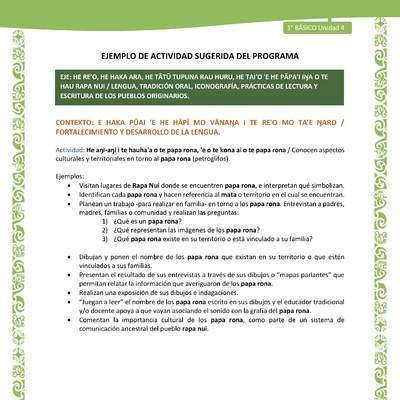 Actividad sugerida LC01 - Rapa Nui - U4 - N°79: Preparan visita a un papa rona.
