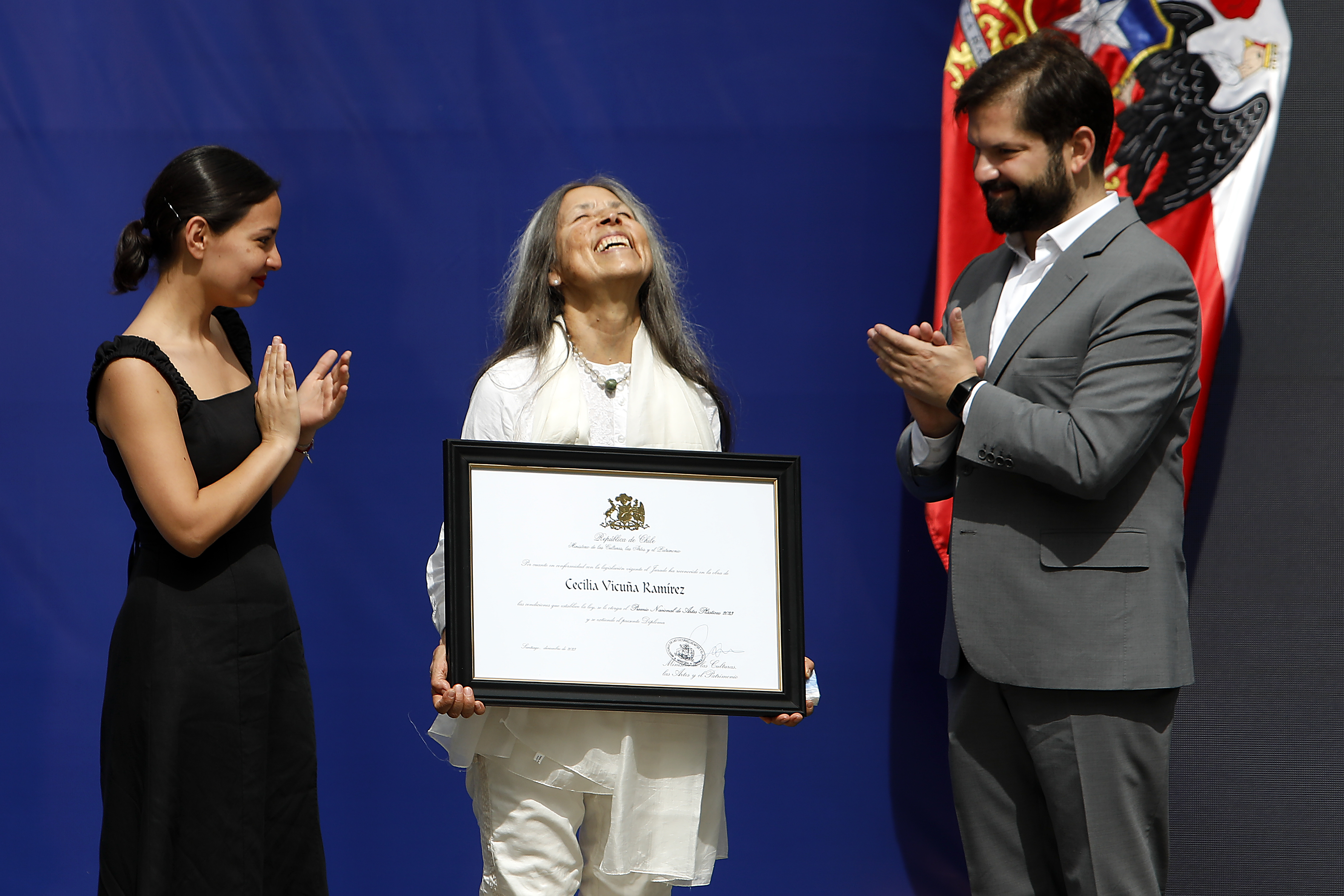 En la instancia, celebrada en el Patio de Los Cañones de La Moneda, los galardonados recibieron su reconocimiento de mano del Presidente Gabriel Boric, el ministro de Educación, Nicolás Cataldo, la ministra de las Culturas, las Artes y el Patrimonio, Carolina Arredondo, y la ministra de las Ciencias, Tecnología, Conocimiento e Innovación, Aisén Etcheverry.