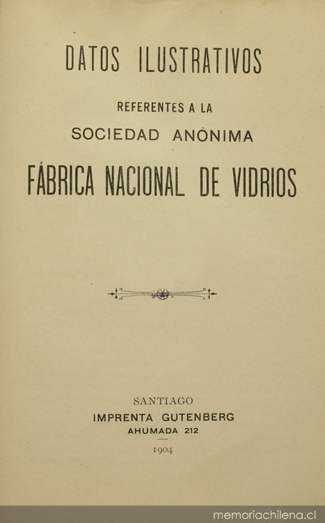 Datos ilustrativos referentes a la Sociedad Anónima Fábrica Nacional de Vidrios