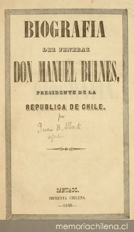 Biografía del jeneral don Manuel Bulnes, Presidente de la Republica de Chile