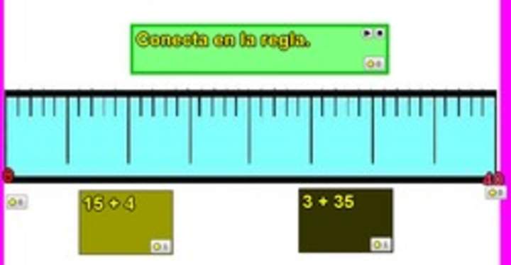 Juego interactivo que implica realizar adiciones simbólicas y ubicar los resultados en una recta numérica hasta 40