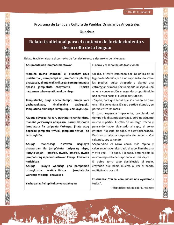 Relato tradicional para el contexto de fortalecimiento y desarrollo de la lengua